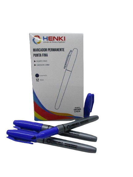 | Producto: | MARCADOR PERMANENTE FINO AZUL HENKI |