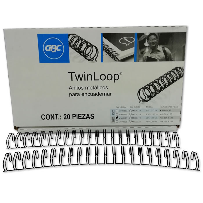 | Descripción: | ARILLO TWIN LOOP DOBLE METALICO 5/8" PULGADA COLOR NEGRO MARCA GBC MODELO M500118 CON 20 PIEZAS |