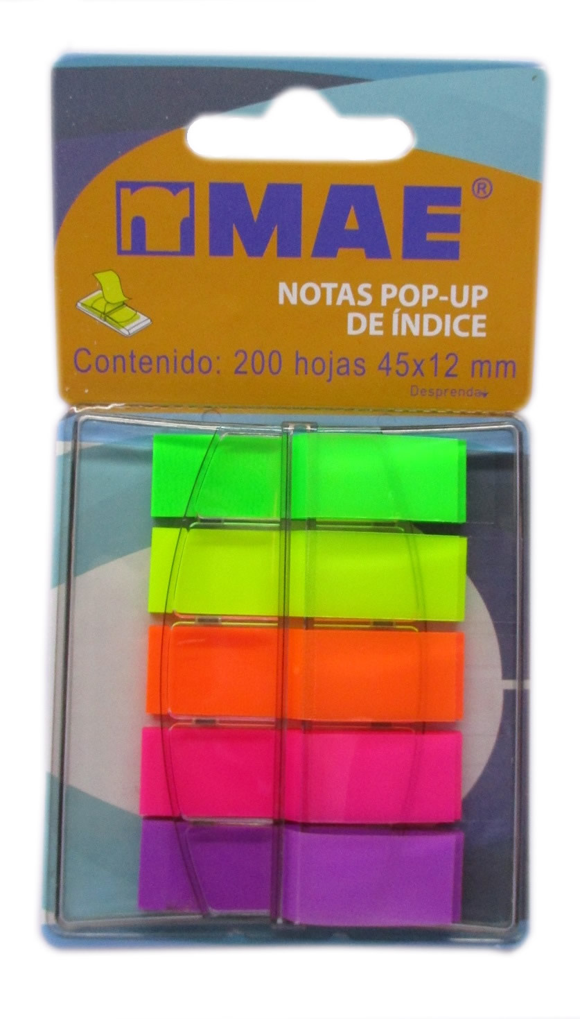 | Descripción: | BANDERITAS ADHESIVAS SEÑALIZADORAS DE INDICE MEDIDA 45 MM X 12 MM DE 200 HOJAS COLORES NEON CON DESPACHADOR MODELO 26002 MAE |