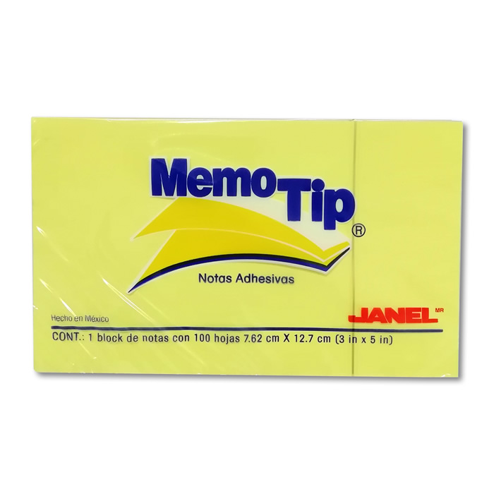 | Descripción: | BLOCK DE NOTAS ADHESIVAS MEDIDA 76 MM X 127 MM (3" X 5") COLOR AMARILLA DE 100 HOJAS POR PIEZA MEMO TIP |