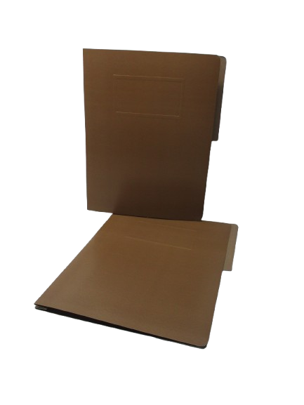FOLDER TAMAÑO CARTA EN CARTULINA TIPO PRESSBOARD DE 350 GRAMOS CON MEDIA CEJA Y PUNTAS REDONDEADAS CON BROCHE DE 8 CENTIMETROS MEDIDAS 23 X 29.5 CMS DE COLOR CAFE MYP