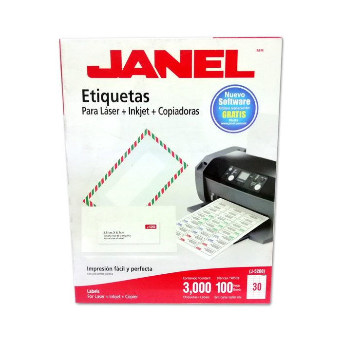 | Descripción: | ETIQUETAS BLANCAS JANEL MODELO J-5260 PARA LASER INKJET Y COPIADORAS MEDIDA 2.5 CM X 6.7 CM CON 100 HOJAS 30 ETIQUETAS POR HOJA |