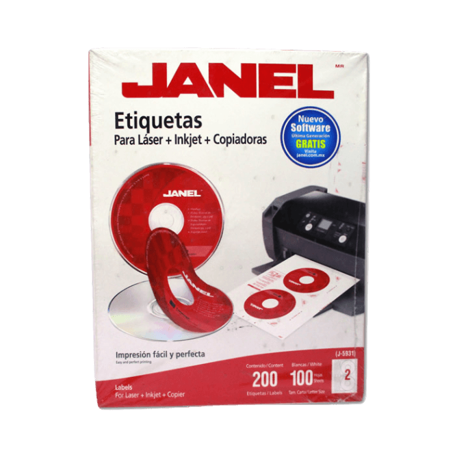 | Descripción: | ETIQUETAS BLANCAS JANEL MODELO J-5931 PARA CD Y DVD PARA LASER INKJET Y COPIADORAS MEDIDA 11.7 CM CON 100 HOJAS 2 ETIQUETAS POR HOJA |