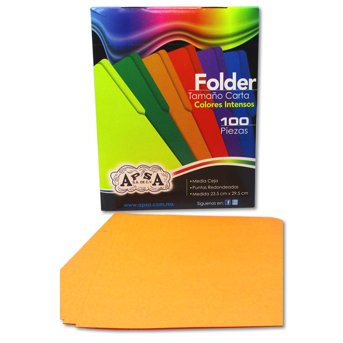 | Descripción: | FOLDER TAMAÑO CARTA EN CARTULINA DE 165 GRAMOS CON MEDIA CEJA Y PUNTAS REDONDEADAS MEDIDAS 23.5 X 29.5 CMS COLOR NARANJA INTENSO APSA PAQUETE CON 100 PIEZAS |