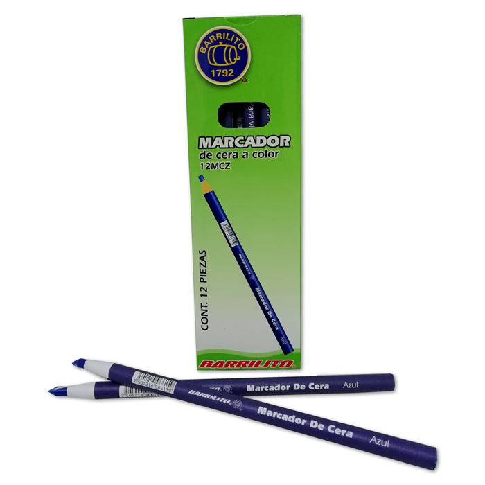 MARCADOR DE CERA BARRILITO AZUL MODELO 12MCZ