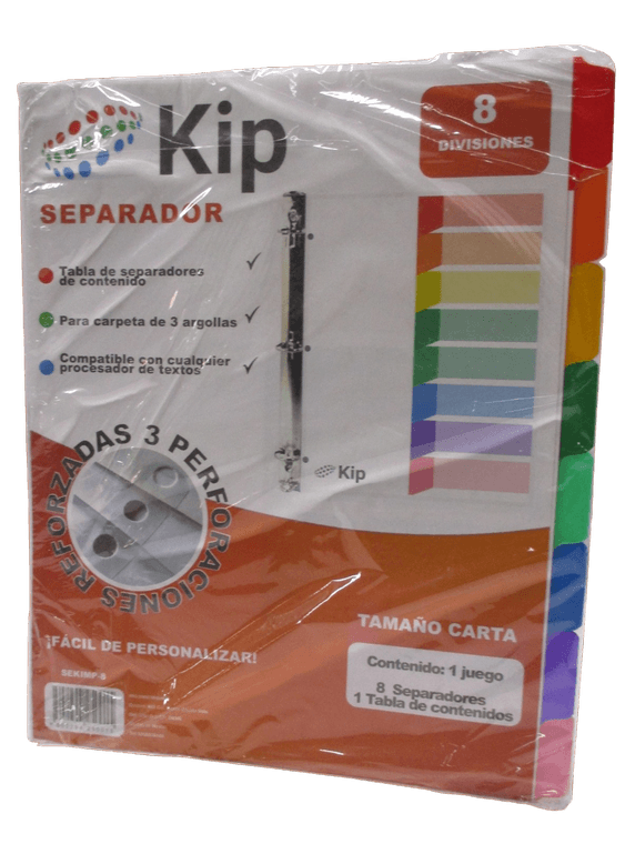 | Producto: | SEPARADORES KIP 8 DIVISIONES SIN NUMERO |