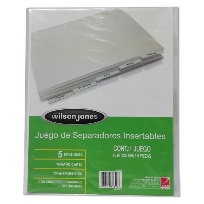 | Producto: | SEPARADORES WILSON JONES 5 DIVISIONES INSERTABLES TRANSPARENTES |